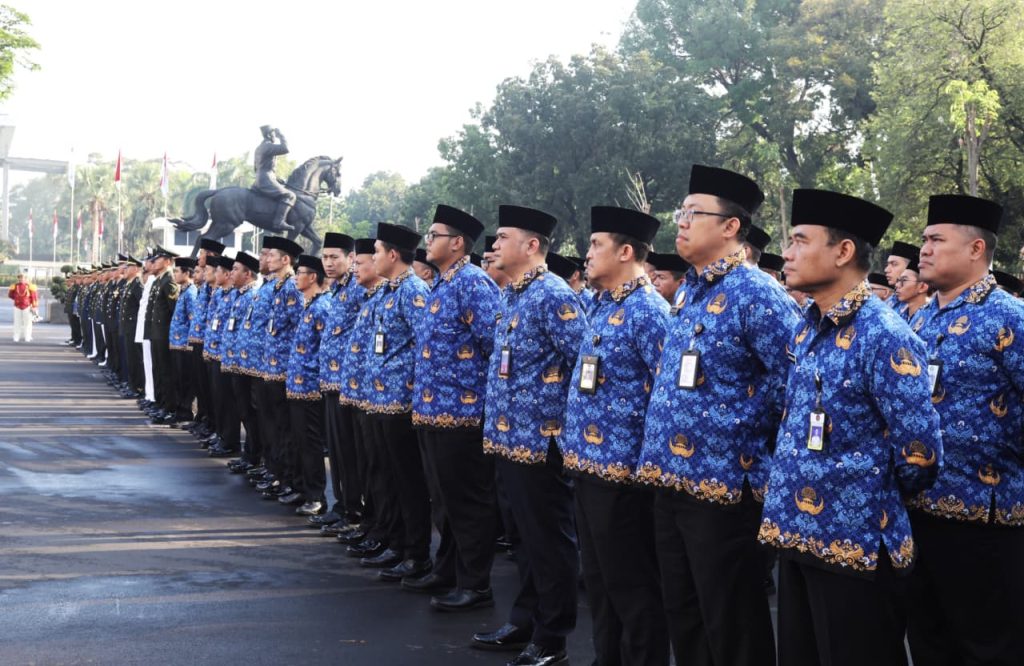 Upacara dimulai pukul 07.00 WIB dan dihadiri oleh pejabat Eselon I, II, III, dan IV di lingkungan Kemhan, serta para Pegawai Negeri Sipil.