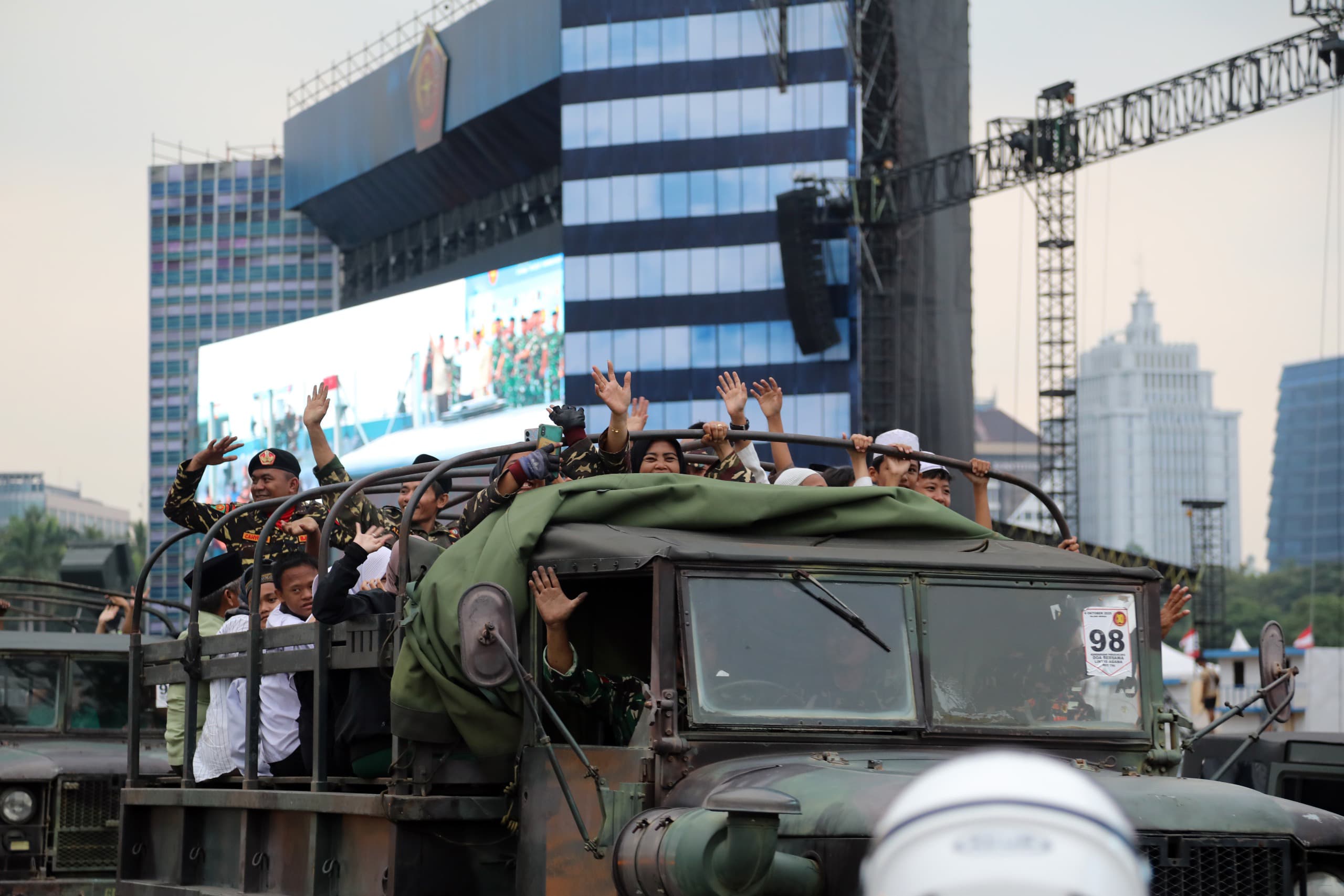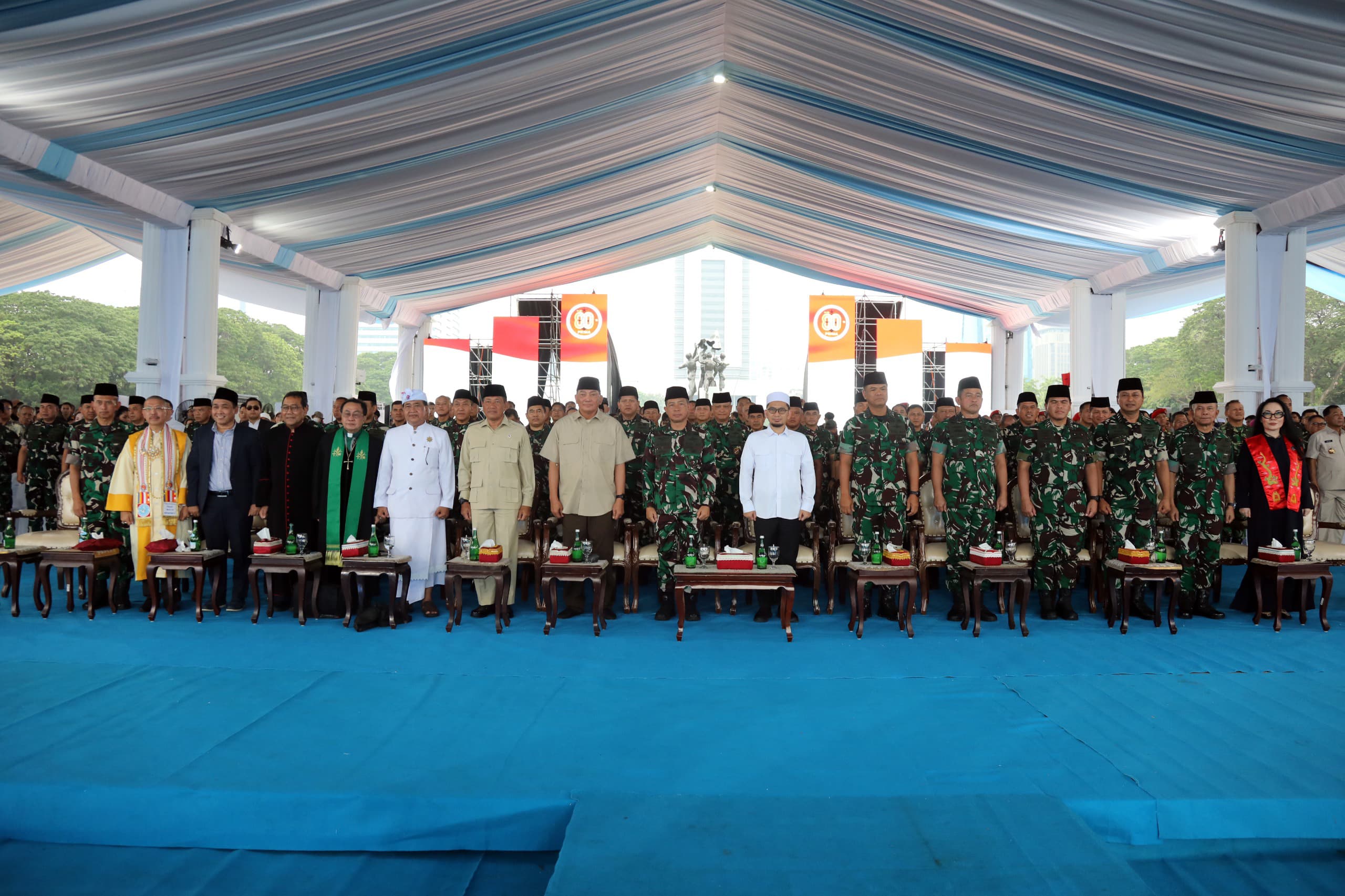 Sabtu, 4 Oktober 2025Jakarta — Menteri Pertahanan RI Sjafrie Sjamsoeddin menghadiri kegiatan Doa Bersama dan Kirab Kebangsaan dalam rangka memperingati Hari Ulang Tahun ke-80 Tentara Nasional Indonesia (TNI) yang digelar di kawasan Monumen Nasional (Monas), Jakarta, Sabtu (4/10/2025). Acara dihadiri oleh ribuan peserta dari unsur TNI, Kementerian Pertahanan, tokoh lintas agama, serta masyarakat umum.