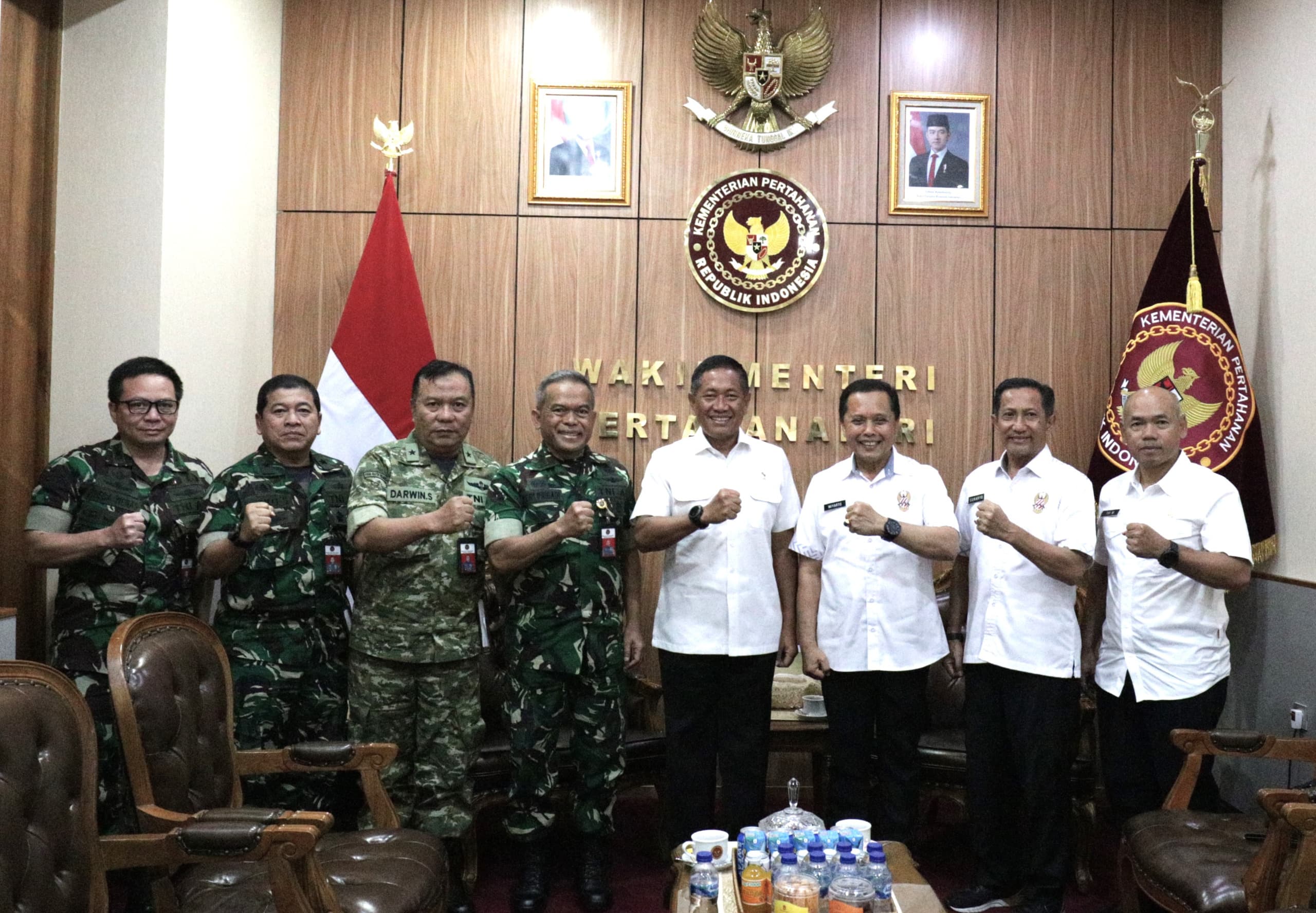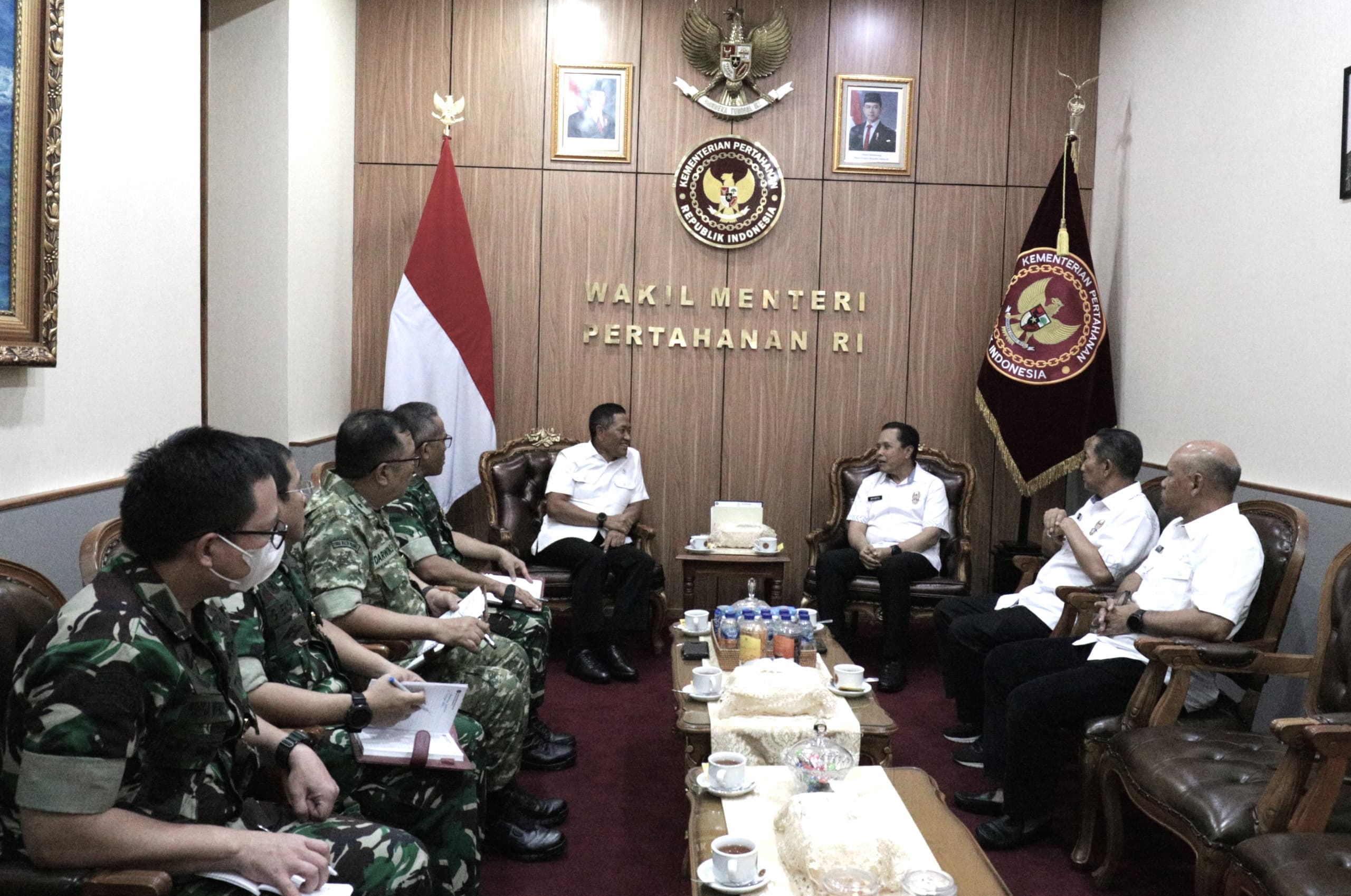 Dalam pertemuan tersebut, Wamenhan Donny didampingi oleh Ses Ditjen Pothan Kemhan, Karo Infohan Setjen Kemhan, serta Dir Bela Negara Ditjen Pothan Kemhan. (Biro Infohan Setjen Kemhan)
