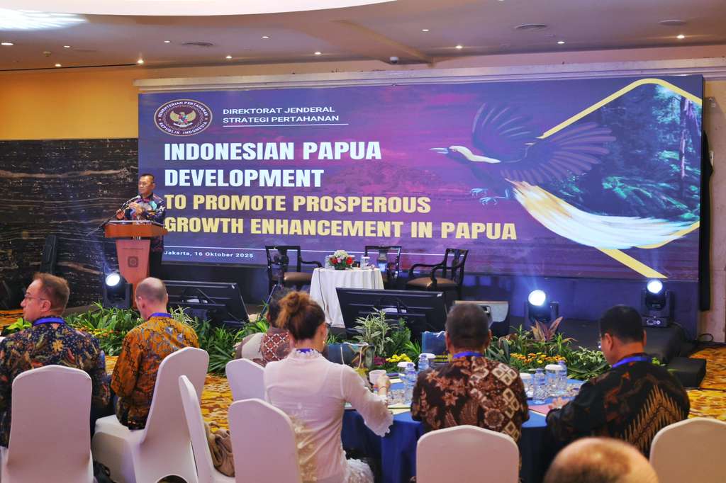 Kamis, 16 Oktober 2025Jakarta — Kementerian Pertahanan melalui Direktorat Jenderal Strategi Pertahanan menggelar Forum Diplomasi Pertahanan di Hotel Borobudur, Jakarta, Kamis (16/10/2025). Kegiatan ini mengusung tema “Indonesian Papua Development to Promote Prosperous Growth Enhancement in Papua” atau Pembangunan Papua Indonesia untuk Mendorong Peningkatan Pertumbuhan Kesejahteraan di Papua.