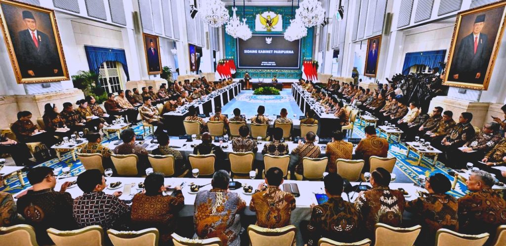 Jakarta – Menteri Pertahanan Republik Indonesia (Menhan RI) Sjafrie Sjamsoeddin menghadiri Sidang Kabinet Paripurna dalam rangka memperingati satu tahun pemerintahan Kabinet Merah Putih di Istana Negara, Jakarta, pada Senin (20/10/2025). Sidang yang dipimpin oleh Presiden RI Prabowo Subianto Bersama Wakil Presiden RI Gibran Rakabuming tersebut membahas perkembangan berbagai program kerja kabinet sekaligus menetapkan arah kebijakan ke depan.
