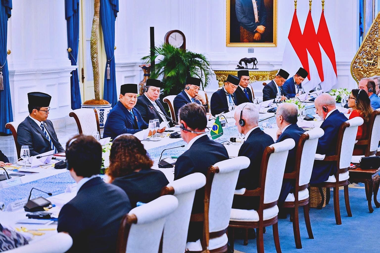 Dalam kesempatan ini, Presiden Prabowo turut memperkenalkan jajaran Menteri Kabinet Merah Putih kepada Presiden Lula da Silva termasuk Menhan Sjafrie Sjamsoeddin.