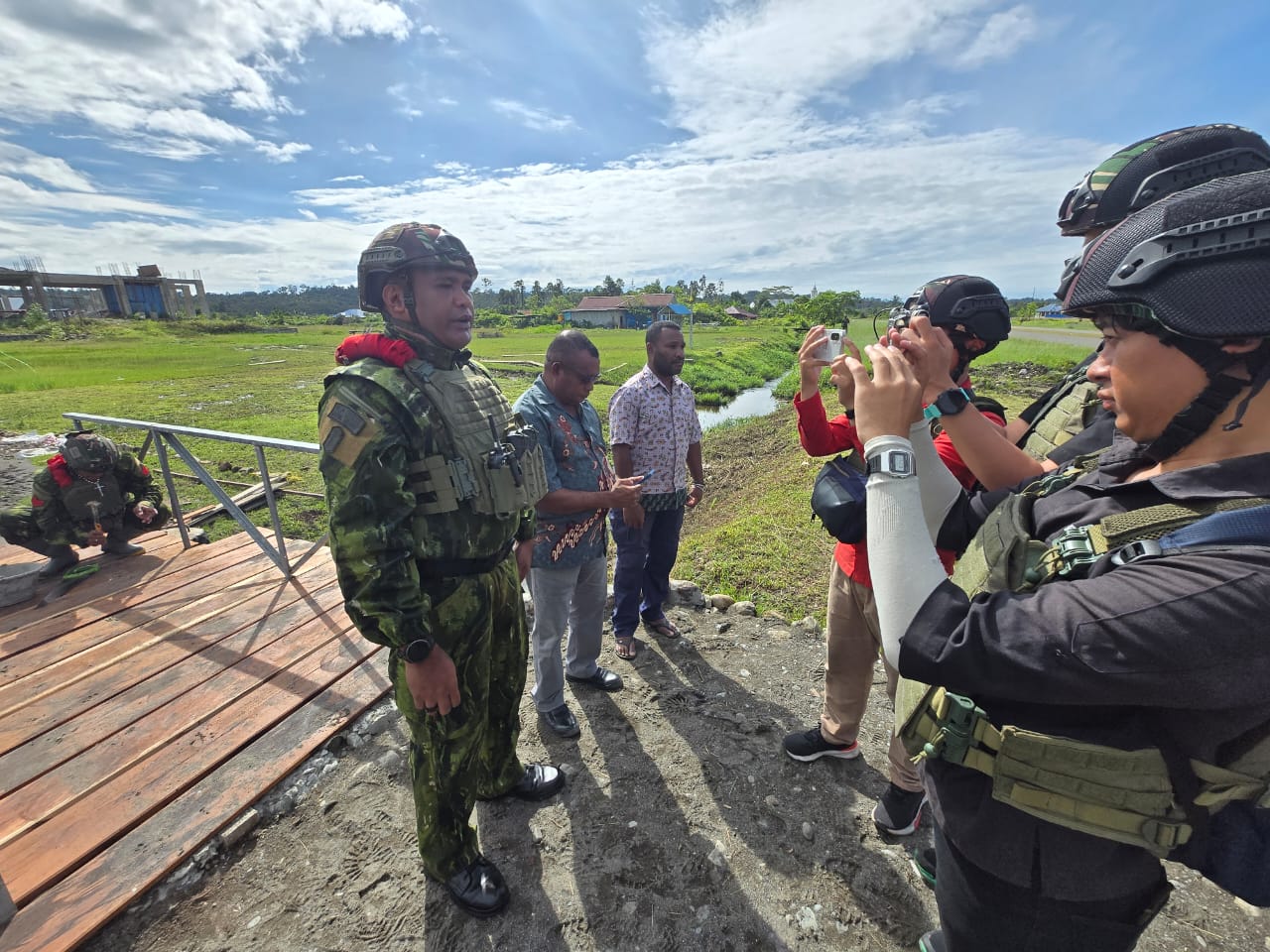 Papua Pegunungan — Kementerian Pertahanan Republik Indonesia (Kemhan RI) bersama Markas Besar Tentara Nasional Indonesia (Mabes TNI) melalui Satuan Tugas (Satgas) Yonif 733/Masariku membangun Patung Kristus Pembawa Damai di Distrik Kenyam, Kabupaten Nduga, Papua Pegunungan, Rabu (29/10/2025). Pembangunan patung ini menjadi bagian dari komitmen Kemhan dan TNI dalam memperkuat semangat persatuan, toleransi, dan perdamaian.