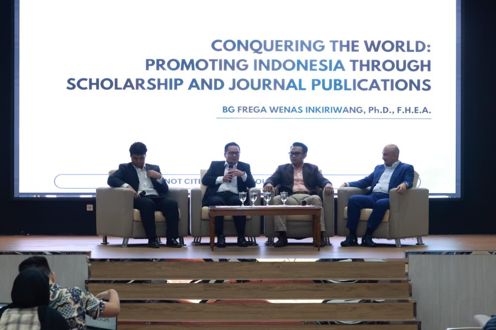 Dalam kesempatan yang sama, Kepala Biro Informasi Pertahanan (Karo Infohan) Setjen Kemhan RI, Brigjen TNI Frega Wenas Inkiriwang, Ph.D, FHEA juga turut menjadi pembicara utama pada seminar tersebut. Dalam paparannya yang bertajuk “Conquering the World: Promoting Indonesia Through Scholarship and Journal Publications”, Brigjen TNI Frega mendorong para mahasiswa untuk menjadi sumber daya manusia unggul dan berdaya saing global.