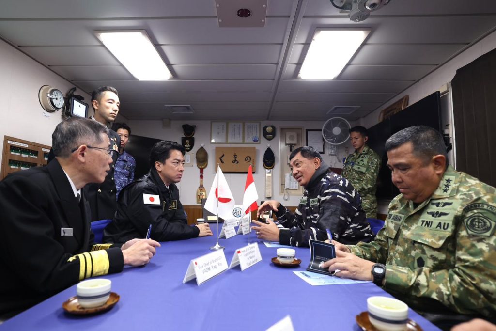 Dalam dialog bersama pejabat senior Kementerian Pertahanan Jepang, Menhan RI menegaskan komitmen Indonesia dan Jepang untuk menjaga Indo-Pasifik yang bebas, terbuka, damai dan stabil, sesuai hukum internasional termasuk UNCLOS 1982. “Indonesia memandang Jepang sebagai mitra strategis dalam memperkuat keamanan maritim regional. Kunjungan ke Yokosuka Naval Base hari ini mencerminkan komitmen bersama untuk membangun stabilitas Indo-Pasifik melalui kolaborasi konkret, interoperabilitas, dan peningkatan kapabilitas pertahanan kedua negara,” ujar Menhan Sjafrie dalam sesi internal bersama pejabat senior Kementerian Pertahanan Jepang. (Biro Infohan Setjen Kemhan)