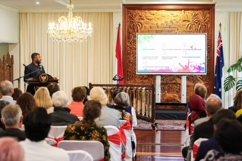Kegiatan utama di Wisma KBRI Canberra (17/11/2025) dihadiri oleh lebih dari 80 peserta internasional, termasuk perwakilan dari Kemhan dan Kemlu Australia, Parlemen Australia, hingga kalangan akademisi dan NGO. Dua tokoh Papua, Dr. Jonathan Kiwasi Wororomi dan Pascal Norotouw, M.Sc., M.A., menyampaikan paparan inspiratif tentang transformasi dan strategi pembangunan Papua yang berkelanjutan, termasuk peran penting generasi muda di era otonomi khusus.