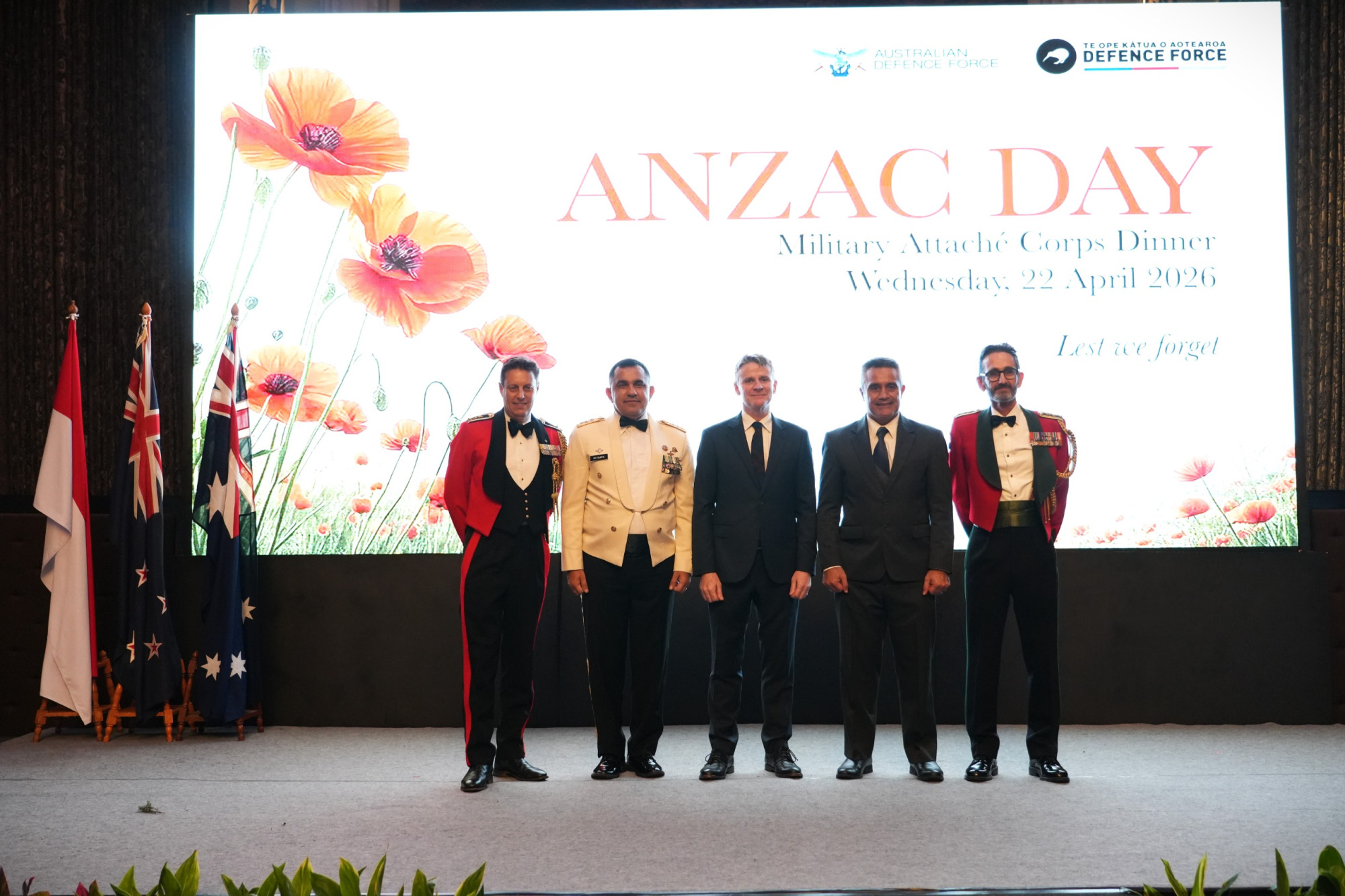 Jakarta – Inspektur Jenderal Kementerian Pertahanan (Irjen Kemhan) Letjen TNI Rui F.G.P. Duarte bersama sejumlah pejabat Eselon I dan II Kemhan menghadiri peringatan ANZAC Day, yang diselenggarakan di Hotel Indonesia Kempinski, Jakarta, Rabu (22/4/2026).