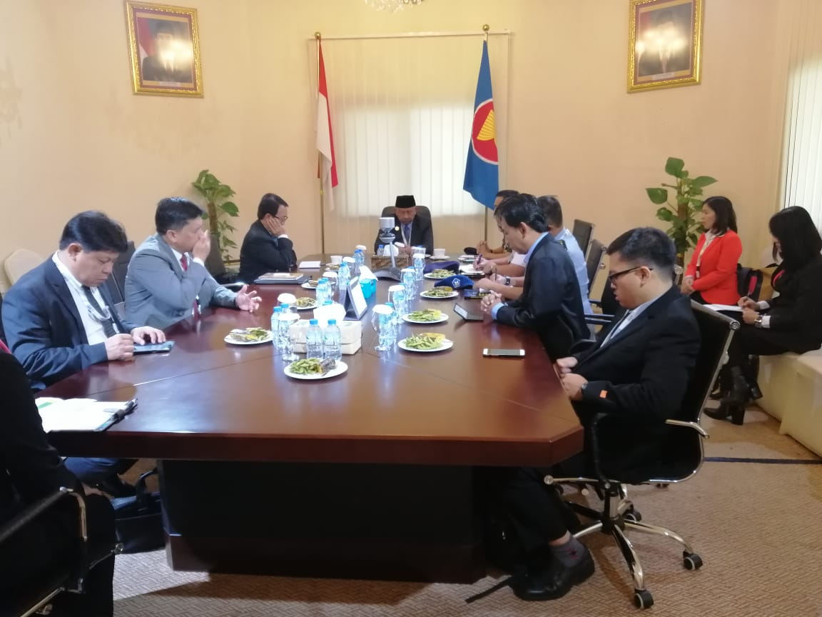 Sebelum pembukaan pameran IDEX Abu Dhabi 2019, dilaksanakan Courtesy Call (CC) kepada Dubes Indonesia untuk UAE Bpk H.E. Husin Bagis yang dipimpin oleh Kolonel Kav S. Iskandar, S.IP Kasubdit Dagun Kermaindhan Dittekindhan Ditjen Pothan Kemhan. Dalam CC ini, Dubes menyambut dengan baik keikutsertaan Indonesia dalam pameran IDEX 2019. Lebih lanjut, Dubes menyampaikan bahwa hubungan Indonesia dengan UAE sudah sangat baik sehingga kerjasama dalam bidang pertahanan sangat terbuka lebar. Pimpinan Delegasi menyampaikan kepada Dubes untuk berkenaan menjadi perpanjangan tangan dalam mempromosikan dan memasarkan produk-produk unggulan Industri Pertahanan Indonesia di UAE. Terkait hal tersebut, Dubes berjanji untuk membantu mempromosikan produk-produk Industri Pertahanan Indonesia salah satunya dengan memasukkan video singkat kumpulan produk-produk Industri Pertahanan kedalam website KBRI.
