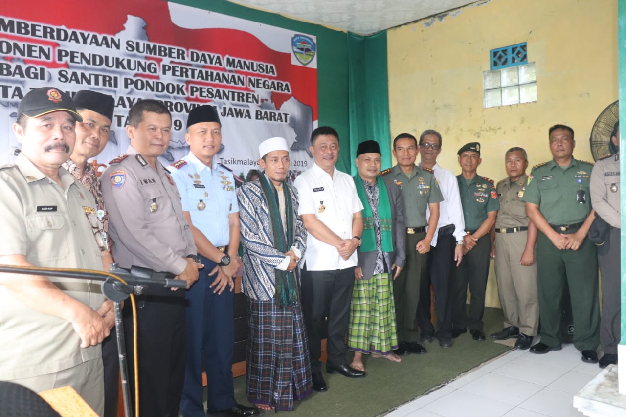 Rabu, 10 April 2019Kegiatan Pemberdayaan Sumber Daya Manusia Komponen Pendukung Pertahanan Negara bagi santri merupakan wahana untuk saling bertukar informasi, menyamakan persepsi dan memotivasi dalam upaya meningkatkan wawasan dan pemahaman kita semua tentang peranan santri sebagai bagian Segmen Sumber Daya Manusia serta meningkatkan kesadaran Bela Negara dalam rangka membangun Sistem Pertahanan Negara yang tangguh. Kegiatan ini dilaksanakan dengan mengambil tema “Pemberdayaan Sumber Daya Manusia Komponen Pendukung Pertahanan Negara bagi Santri Pondok Pesantren di Kota Tasikmalaya Provinsi Jawa Barat kita wujudkan sistem Pertahanan Negara yang tangguh “. Kegiatan dilaksanaka selama 3 hari dari tanggal 10 s.d 11 April 2019 bertempat di Pondok Pesantren Miftahul Anwar Kp. Nangela Kel Mugar Sari Kec. Taman Sari Kota Tasikmalaya Prov Jawa Barat. Kegiatan ini dihadiri oleh Kapolsek Taman Sari Akp Agus Maulani, KemenAg Kota Bapak Asep Saifullah, Seksi pengamat Taman Sari Bapak A. Supardia, Sekmat Kec Taman Sari Bapak Asep Aefi dan Kasi Mugasri Satpol PP. Kegiatan ini diawali dengan Pembacaan Al Qur’an oleh santri Ajis Muslim, Sambutan ketua penyelenggara oleh Letkol Asep Suryana SH, Sambutan Pimpinan Ponpes oleh Bpk K.H.Assep Ishak M. Ag, Sambutan Dirjen Pothan di wakili oleh Dir Komduk Ir Tristan Sumarjono M.M, Pembacaan doa Ketua forum pompes Kota Tasik H. Nono.