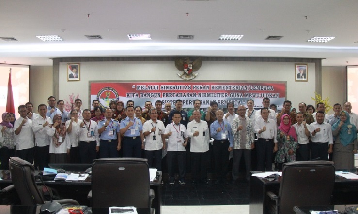 Dalam sambutan Dirjen Pothan Kemhan yang disampaikan oleh Kasubdit SDM Ditkomduk Ditjen Pothan Kolonel Inf Purwanto menyampaikan bahwa masalah pertahanan negara bukan hanya menjadi tanggung jawab Kementerian Pertahanan dan TNI semata, akan tetapi menjadi hak dan kewajiban setiap warga negara, termasuk di dalamnya peran dari Kementerian dan Lembaga. Karena kedua hal itulah maka pada kegiatan ini mengangkat tema “Melalui Sinergitas Peran Kementerian/Lembaga, Kita Bangun Pertahanan Nirmiliter Guna Mewujudkan Sistem Pertahanan Semesta”. Bahwa pembangunan pertahanan nirmiliter dilatarbelakangi oleh dinamika perubahan paradigma ancaman terhadap kedaulatan negara, keutuhan wilayah dan keselamatan bangsa yang ditandai oleh kemajuan ilmu pengetahuan dan teknologi saat ini. Ancaman yang semula bersifat konvensional (militer), saat ini dan kemungkinannya ke depan akan didominasi oleh ancaman yang bersifat nonmiliter ataupun kolaborasi keduanya, dan bersifat multidimensional.