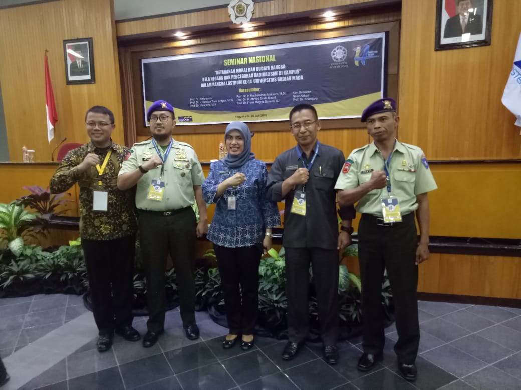 Pada seminar nasional ini , Dirjen Pothan Kemhan Prof. Dr. Ir. Bondan Tiara Sofyan, M.Si menyampaikan adanya ancaman mindset untuk mengubah keyakinan pada Pancasila sebagai dasar dan ideologi negara. Disampaikan data Alvara Institute bahwa 23,4 % mahasiswa setuju dengan jihad untuk tegaknya negara Islam atau khilafah. Juga disampaikan metode dan arena infiltrasi paham tersebut di sekolah dan kampus, yang memanfaatkan adanya kebebasan mimbar akademik. Untuk itu, diharapkan pimpinan perguruan tinggi pro-aktif untuk mengkampanyekan Bela Negara, bagi seluruh unsur civitas akademika kampus. Kebijakan Kemristekdikti adalah dengan mengeluarkan Permen 55/2018 tentang Pembinaan Ideologi Pancasila dalam Kegiatan Kemahasiswaan, penguatan Mata Kuliah Wajib Umum, menjaring komitmen kebangsaan dan kesiapan menerima sanksi pada saat seleksi masuk mahasiswa, memperkuat General Education (kurikuler, ko dan ekstra kurikuler) serta peningkatan kompetensi pimpinan Perguruan Tinggi, dosen dan staf non-akademik dalam hal wasbang, bela negara dan cinta tanah air.