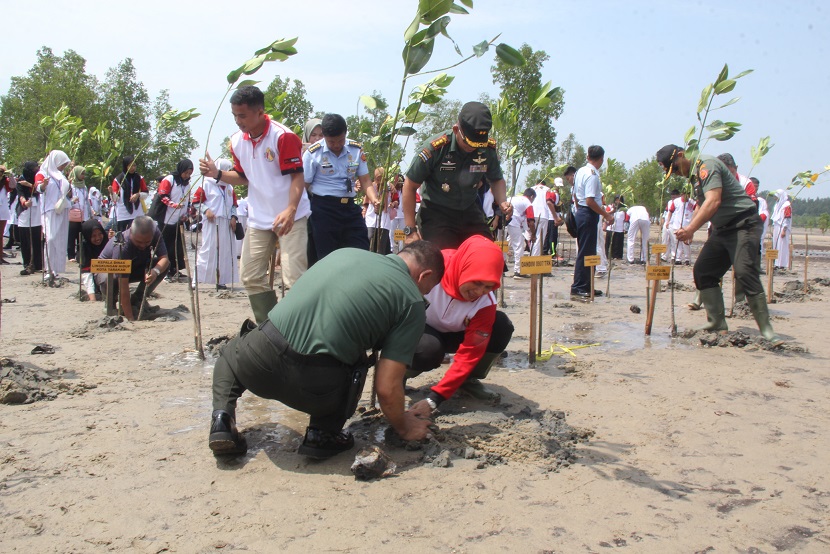 Dalam rangka memperingati HUT RI ke 74 Dirjen Pothan Kemhan Prof. Dr. Ir. Bondan Tiara Sofyan, M. Si. Bersama para tokoh masyarakat, tokoh adat, mahasiswa dan pelajar di Kota Tarakan Kalimantan Utara melaksanakan rangkaian kegiatan penanaman pohon mangrove di Pantai Amal Tarakan Timur (16/08/2019). Kegiatan ini merupakan salah satu wujud nyata Bela Negara yang dilakukan oleh setiap warga negara dalam rangka melestarikan lingkungan hidup.