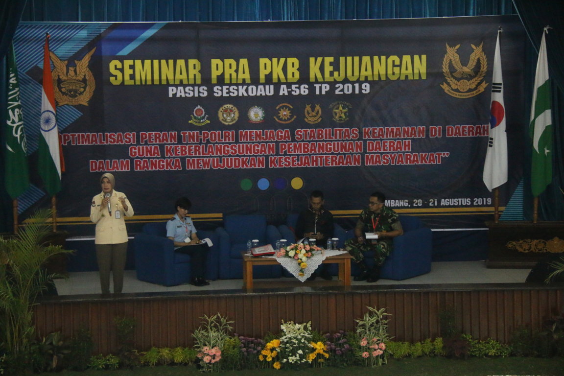Adapun judul makalah dalam Seminar Pra PKB Kejuangan ”Optimalisasi peran TNI-Polri menjaga Stabilitas Keamanan di Daerah Guna Keberlangsungan Pembangunan daerah dalam rangka Mewujudkan kesejahteraan masyarakat” Kegiatan seminar Pra PKB Kejuangan dibuka oleh Komandan Seskoau Marsekal Muda TNI Donny Ermawan T.,M.D.S dilaksanakan pada hari Selasa (20/08/2019) bertempat di Gedung Surtasala Seskoau Lembang Bandung, Dirjen Pothan Kemhan Prof. Dr. Ir. Bondan Tiara Sofyan, M. Si sebagai Pemrasaran I dan Direktur Eksekutif Imparsial Bapak Al Araf sebagai Pemrasaran II serta dihadiri oleh Para Dosen, Patun dan Pasis Seskoau angkatan ke 56 TP. 2019.