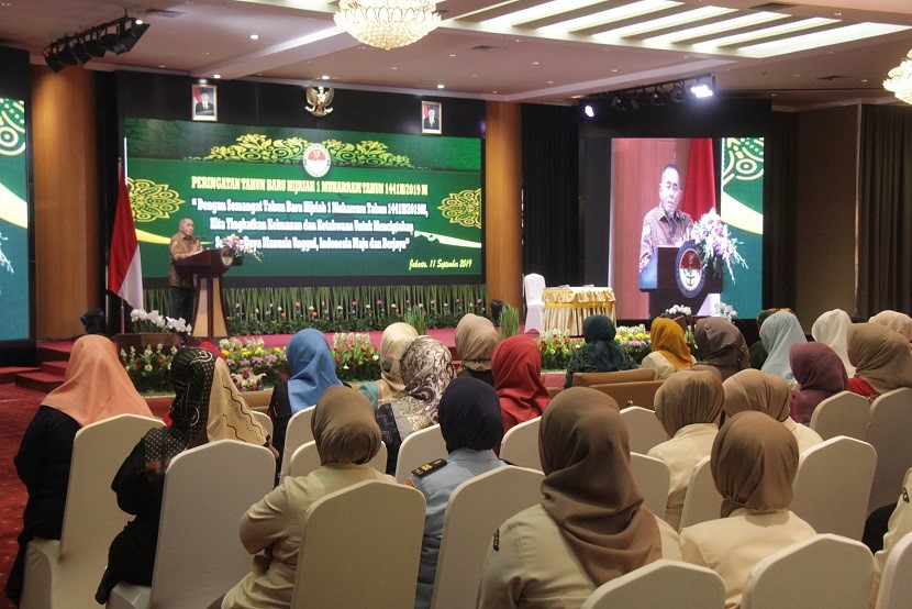 Dalam sambutannya Menteri Pertahanan RI Bapak Ryamizard Ryacudu menyampaikan bahwa peringatan 1 Muharram 1441 H adalah momentum untuk meningkatkan keimanan dan ketaqwaan kepada Allah, kita jangan sampai larut dengan perkembangan jaman yang semakin komplek apabila kita tidak bisa memilah-milah mana yang baik dan mana yang kurang baik maka dapat merusak keimanan dan ketaqwaan, untuk itu jaga diri, keluarga dari hal-hal yang negatif, untuk itu seluruh anggota yang hadir agar menyimak apa yang disampaikan oleh Penceramah.