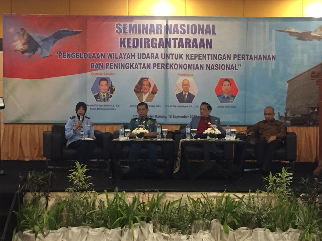 Seminar dipimpin oleh Marsekal Muda TNI Nazirsyah, M.Sc. (Asisten Potensi Dirgantara Kasau) dengan narasumber Laksma TNI Sri Yanto, S.T. (Dirtekindhan Ditjen Pothan Kemhan), Prof. Dr. Atif Latifulhayat dan Marsekal TNI (Purn) Chappy Hakim. Seminar ini dihadiri oleh 200 peserta terdiri dari pejabat TNI dan POLRI, Forkopimda Provinsi Sulut dan Kota Manado, Mahasiswa Universitas Sam Ratulangi, Mahasiswa Universitas Negeri Manado, Mahasiswa Universitas Nusantara, Mahasiswa Perguruan Tinggi Kota Manado, Tokoh Agama dan Tokoh Masyarakat Manado dan Personel Lanud Sam Ratulangi.