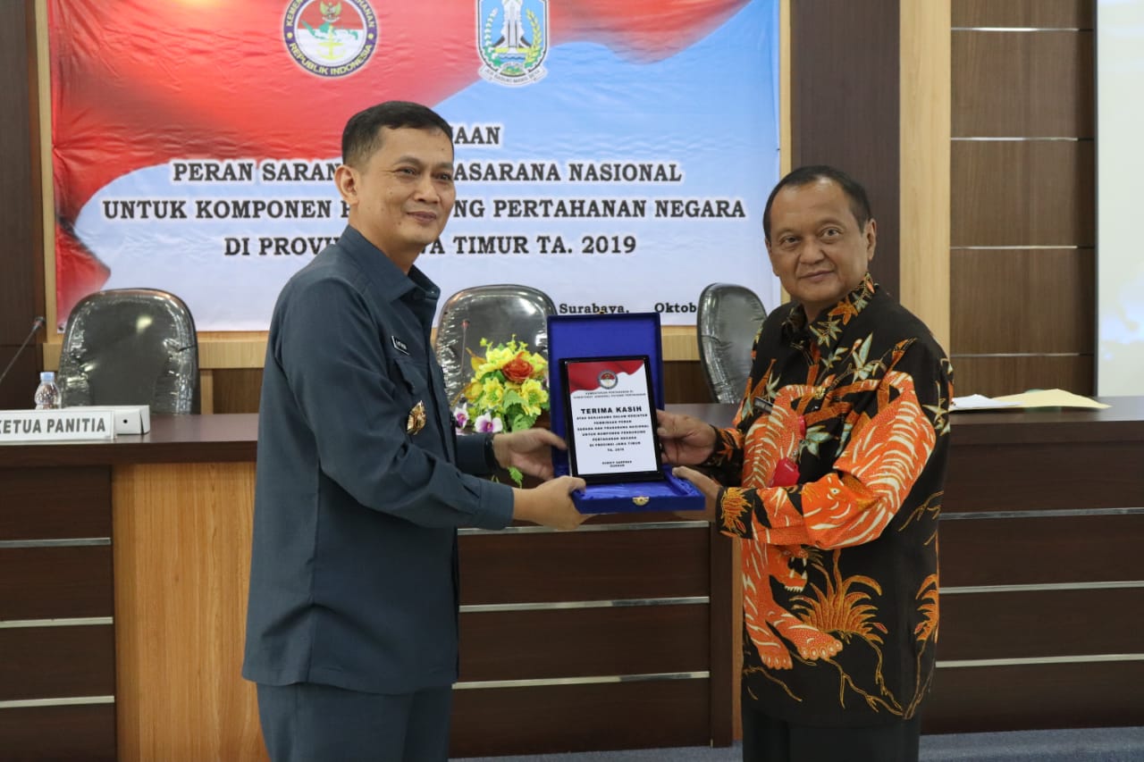 Kamis, 31 Oktober 2019Ditsumdahan Ditjen Pothan Kemhan melaksanakan kegiatan Pembinaaan Peran Sarana dan Prasarana Nasional untuk Komponen Pendukung Pertahanan Negara pada Kamis (31/10/2019) bertempat di Rupat Lt.III Bakesbangpol Prov.Jatim Jl, Putat Indah No,1 Surabaya. Kegiatan dibuka secara resmi oleh Kabadan Kesbangpol Prov. Jatim Drs. Jonathan Judianto yang diikuti oleh 50 orang peserta terdiri dari pejabat Eselon III dan IV Satuan Kerja Perangkat Daerah (SKPD) Prov. Jatim, antara lain Kesbangpol Dinas PUPR, Dinas Perhubungan, Dinas Kesehatan, Dinas Kominfo, Dinas Kelautan dan Perikanan, Dinas Pendidikan, Pemuda dan Olahraga, Dinas Perindag , BPTD, BPS, BMKG, Bea Cukai, Kodam V/ BRW Lantamal V Surabaya, Lanud Juanda, RRI, TVRI, TV Swasta, PT. Telkom, PT. Angkasa Pura, PT. Pertamina, PT. KAI, PT. LPPNPI, RS. UP, RS. Swasta dan Pengurus Organda.