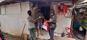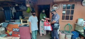 Kegiatan pembagian paket sembako berjalan tertib aman dan lancar. (Red Bag Datin/Dit Bela Negara).
