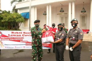 Kegiatan ini dimulai dari penyerahan paket sembako secara simbolis oleh Dir Bela Negara kepada Tim Relawan yang dipimpin oleh Kasubdit Bela Negara Kolonel Lukhito berjumlah 50 orang, Tim lanjut bergerak ke RS. Suyoto Pusrehab Kemhan Jl. RC Veteran Raya No 178 Bintaro Jakarta Selatan dengan menggunakan kendaraan yang sudah disiapkan untuk menyerahkan paket sembako kepada 5 ketua RT, yang nantinya paket sembako tesebut akan diserahkan lansung oleh Tim relawan kepada masyarakat yang betul-betul berhak menerimanya. Dalam kesempatan tersebut Direktur Bela Negara menekankan beberapa hal diantaranya: perhatikan faktor keamanan, patuhi protap kesehatan covid-19 yang sudah ditentukan pemerintah jangan sampai dilanggar.