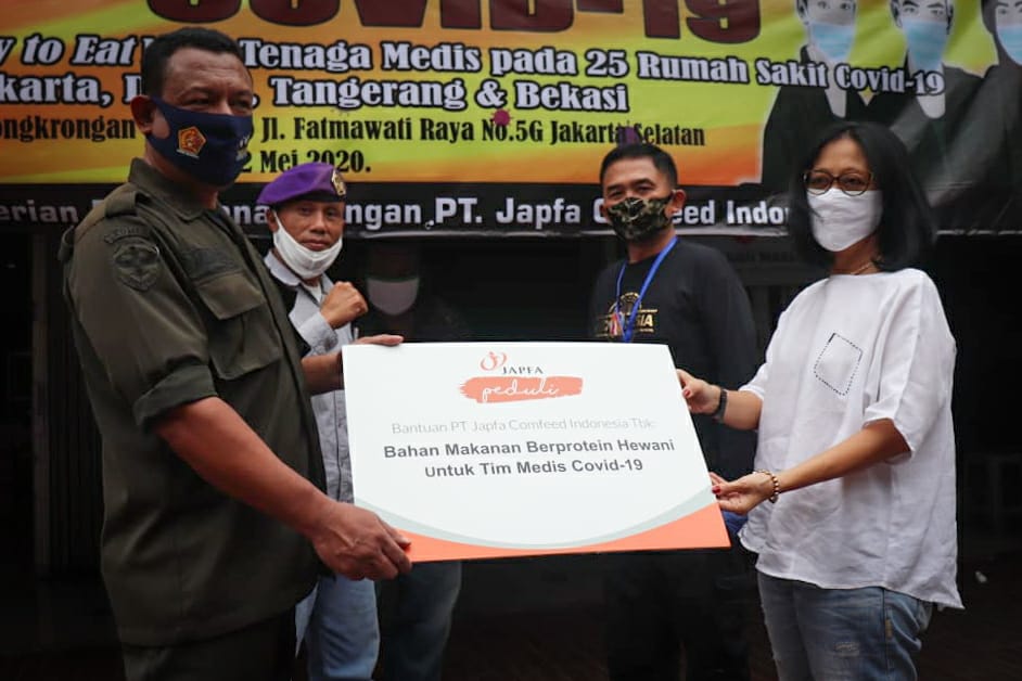 Rabu, 13 Mei 2020Kementerian Pertahanan dalam hal ini Ditjen Pothan Kemhan melaksanakan kegiatan penyaluran paket makanan siap saji sejumlah 2.500 paket untuk tenaga Medis di 25 Rumah Sakit Wilayah Jakarta, Bekasi, Depok dan Tanggerang bekerjasama dengan PT Japfa Comfeed Indonesia pada hari selasa 12 Mei 2020 yang bertempat di Restong Cafe Jl. Fatmawati Jakata Selatan, dipimpin langsung oleh Direktur Bela Negara Brigjen TNI Jubei Levianto.S.Sos., M.M. Kegiatan ini dihadiri oleh Para Kasubdit Bela Negara Ditjen Pothan, Resimen Mahasiswa Mahajaya Jakarta dan IARMI (Ikatan Alumni Resimen Mahasiswa Indonesia).