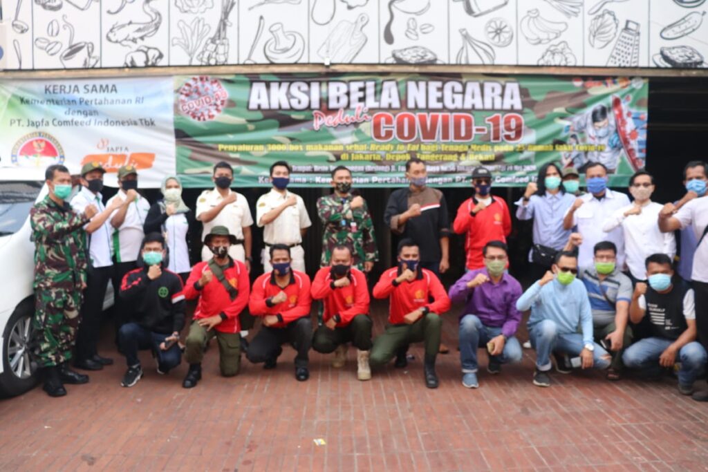 Sebagai bentuk empati terhadap para pahlawan covid 19 Kementerian pertahanan bekerja sama dengan PT Japfa Comfeed Indonesia Tbk melaksanakan aksi bela negara dengan membagikan 3000 box makanan sehat ready-to-eat kepada para tenaga medis di rumah sakit covid 19 dan ini merupakan aksi yang ke 5 di wilayah Jadetabek, dipimpin langsung oleh Direktur Bela Negara Brigjen TNI Jubei levianto S.Sos., M.M sore tadi Selasa 19 Mei 2020 bertempat di Restong (Resto Tongkrongan) Jl Fatmawati Jakarta Selatan.