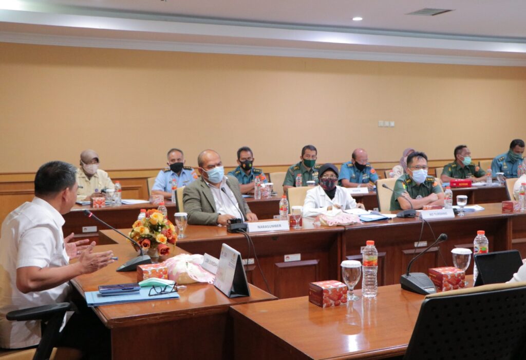 Kamis, 26 November 2020Kamis (26/11/20) Direktur Sumdahan Ditjen Pothan Kemhan Brigjen TNI Fahrid Amran, S.H., memimpin rapat Penyusunan Draft Permenhan tentang Penetapan dan Pembinaan Komponen Pendukung Pertahanan Negara yang dihadiri Dr. DKS. Nugraha, SP., M.Si., MBA-GSC, Para Kasubdit dan Andya/APN serta para Kasi di lingkungan Ditsumdahan dan peserta dari Direktorat Turdang Ditjen Strahan Kemhan. Kegiatan ini dilaksanakan di Ruang Rapat Gedung R. Suprapto Lantai 8.