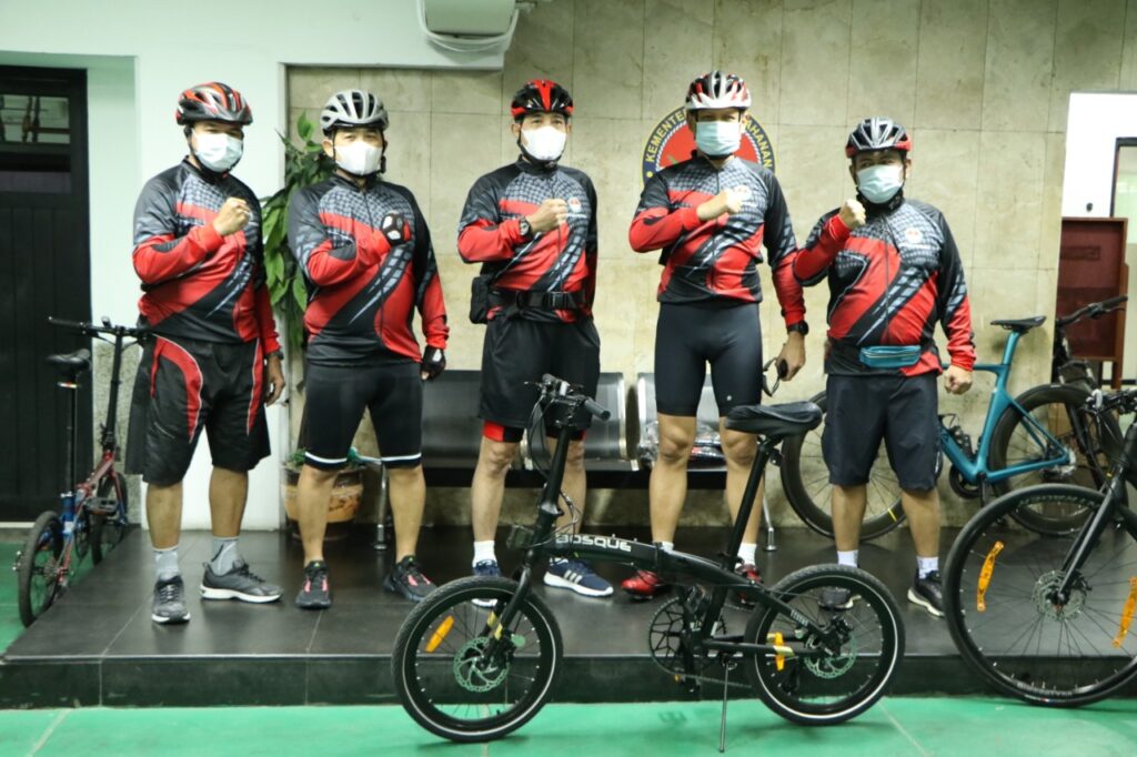 Kegiatan sepeda mengambil start di Lapangan Bhinneka Tunggal, dilanjutkan gowes menuju patung kuda Arjuna Wiwaha – Bundaran HI – jembatan Semanggi – Patung Pemuda Senayan, lalu kembali dengan rute yang sama mengarah ke Kemhan dengan jarak kurang lebih sejauh 20 km. Pelaksanaan sepeda sehat tetap mematuhi protokol kesehatan. (Red. Bagdatin Ditjen Pothan)