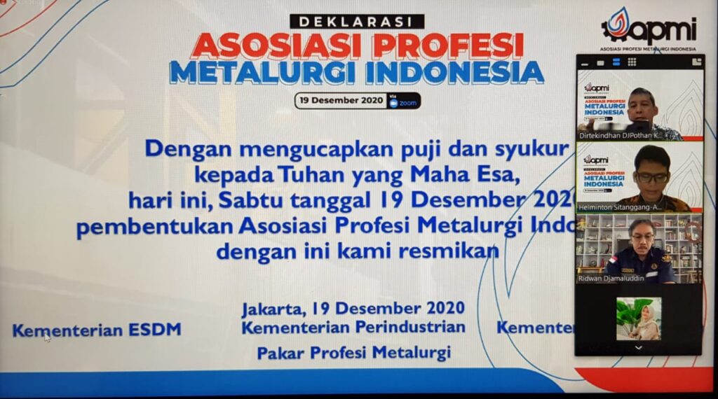 APMI dibentuk sebagai wujud partisipasi aktif SDM profesional di bidang metalurgi terutama dalam hal pelaksanaan Undang-undang No. 3 Tahun 2020 tentang Perubahan atas Undang-undang No. 3 Tahun 2014 tentang Perindustrian yang sinergi antara pemerintah, industri, akademisi serta semua stakeholder dalam ranah keprofesian metalurgi. (Red Bagdatin Setditjen Pothan)
