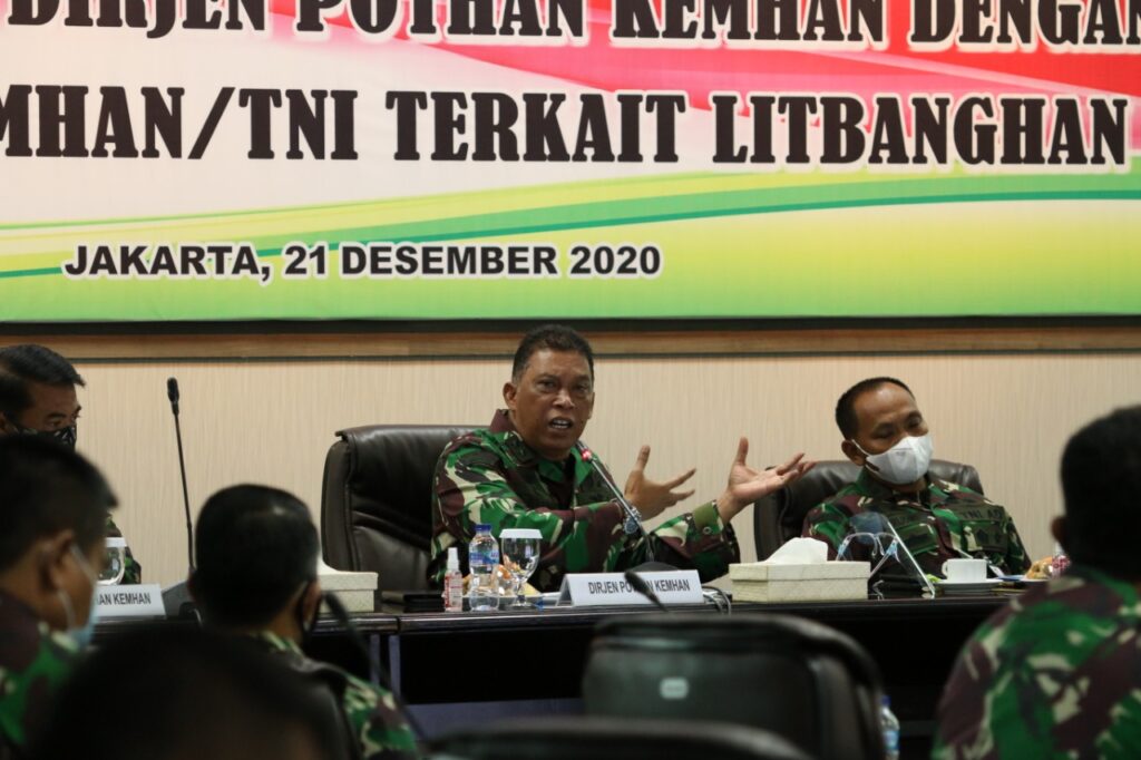 Senin, 21 Desember 2020Jakarta Senin (21/12/2020). Dirjen Pothan Kemhan, Mayjen TNI Dadang Hendrayudha memimpin acara Silaturahmi Dirjen Pothan Kemhan dengan Pejabat Kemhan/TNI terkait Litbang di Aula Bela Negara Gedung R. Soeprapto Lantai 8 Ditjen Pothan Kemhan. Hadir pada kegiatan tersebut adalah Dirjen Renhan, Dirjen Kuathan, Kabalitbang, Kabid Litbangyasa Timlak KKIP, pejabat eselon 2 dan eselon 3 lingkungan Kemhan, Mabes TNI dan Angkatan serta Ketua Pinhantanas dan pengurus Pinhantanas.