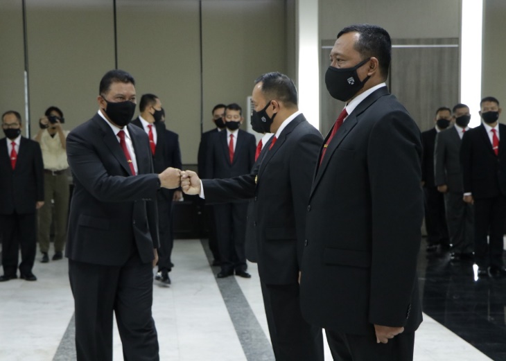 Senin, 8 Februari 2021Senin 08/2/21. Dirjen Pothan Kemhan Mayjen TNI Dadang Hendrayudha memimpin Sertijab, Pelantikan dan Pengangkatan Sumpah Pejabat Eselon III yang dihadiri oleh Sesditjen, para Direktur, para Kabag/Kasubdit, perwakilan Andya dan APN Ditjen Pothan Kemhan. Kegiatan ini dilaksanakan di Aula Bela Negara Lt. 8 Gedung R. Suprapto.