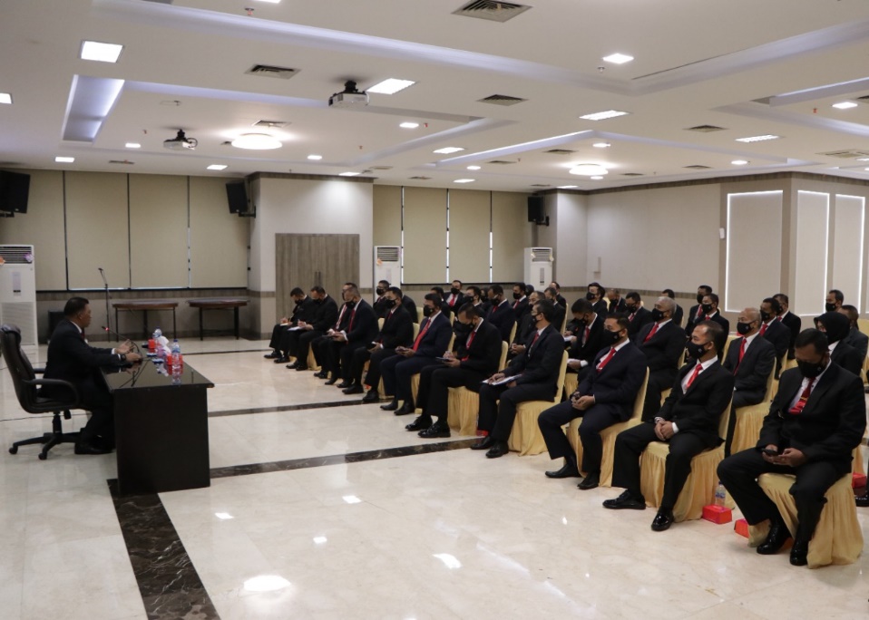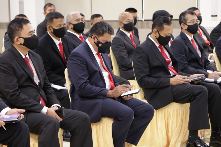 Kegiatan dilanjutkan pengarahan Dirjen Pothan Kemhan kepada Eselon III Ditjen Pothan bertempat bertempat di Aula Abdi Negara Lt. 8 Gedung R. Suprapto. (Red Bagdatin)