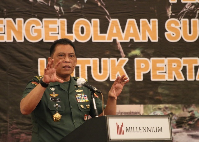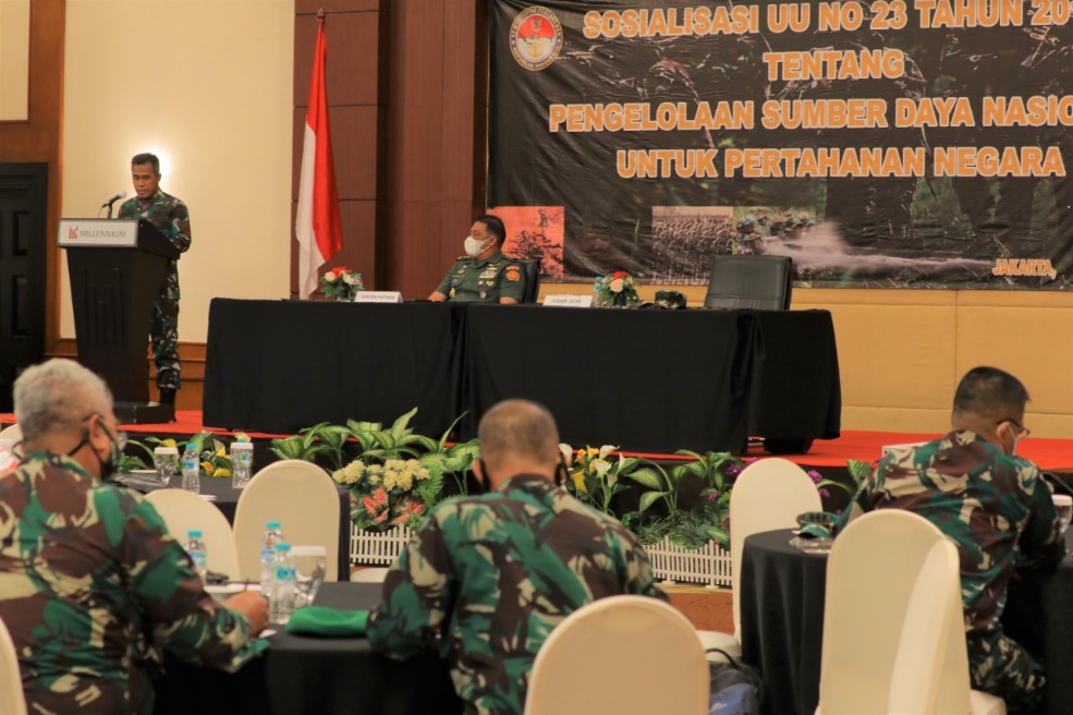 Jakarta Selasa 06/04. Dirjen Pothan Kemhan Mayjen TNI Dandang Hendrayudha didampingi Dirsumdahan Brigjen TNI Fahrid Amran, S.H. memimpin pelaksanaan kegiatan sosialisasi UU No. 23 Tahun 2019 tentang Pengelolaan Sumber Daya Nasional untuk Pertahanan Negara yang dilaksanakan di Hotel Millenium Jakarta. Kegiatan ini dihadiri oleh Pejabat dijajaran TNI/Polri, Pemerintah Daerah serta beberapa Perusahaan BUMN dan BUMD.