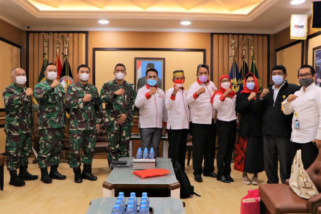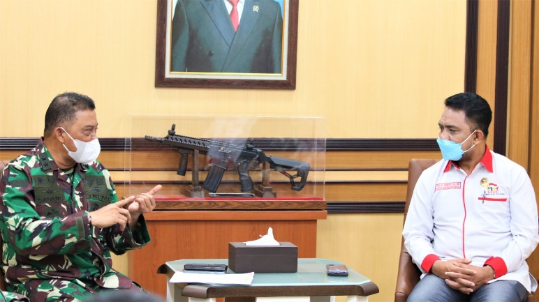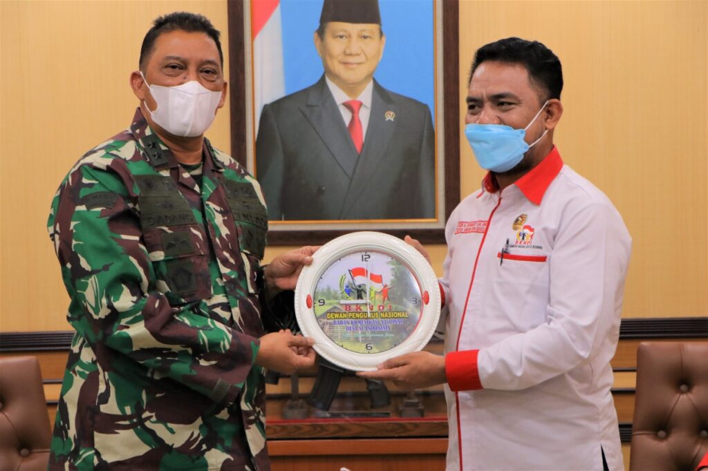 Selasa, 20 April 2021Selasa 20/04/2021 Dirjen Pothan Kemhan Mayjen TNI Dadang Hendrayudha menerima audiensi dengan Dewan Pengurus Nasional (DPN), Badan Komunikasi Nasional Desa se-Indonesia (BKNDI). Hadir dalam kegiatan tersebut: Direktur Bela Negara Brigjen TNI Dr. Jubei Levianto, S. Sos., M.M., Kasubdit Lingkim Dit BN, Kasubdit SDAB Dit Sumdahan dan Pengurus Pusat DPN BKNDI, Kegiatan ini dilaksanakan di ruang CC Dirjen Pothan Kemhan Gedung R. Soeprapto Lt 2.