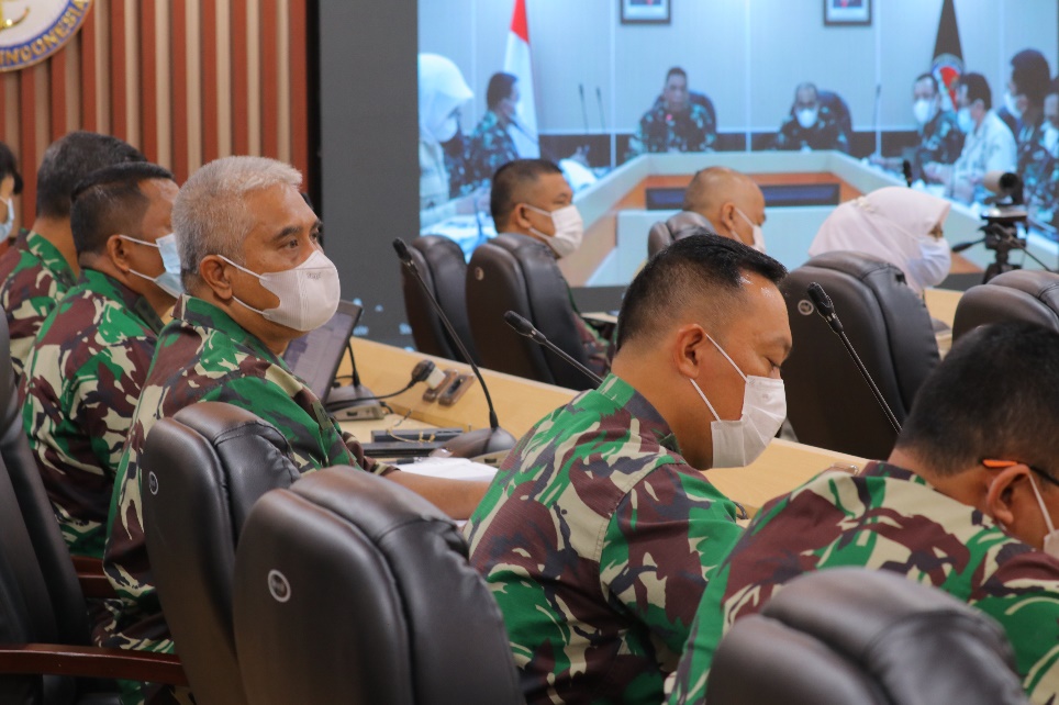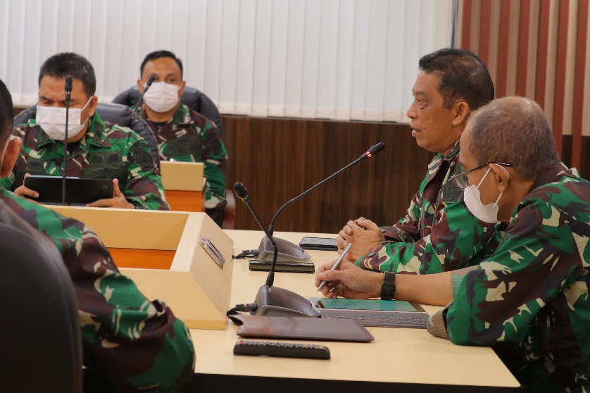 JAKARTA Senin (03/05/21). Dirjen Pothan Kemhan Mayjen TNI Dadang Hendrayudha memberikan pengarahan kepada para Pejabat Eselon II & III di Ruang Rapat lantai 2 Gedung R. Soeprapto Ditjen Pothan Kemhan, kegiatan ini juga diikuti oleh seluruh anggota Pothan dilaksanakan secara virtual dan tetap mematuhi protokol kesehatan.