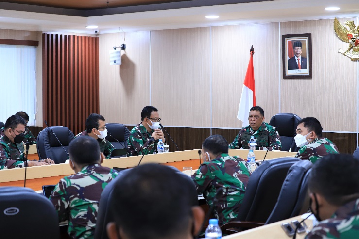 Senin, 20 September 2021Senin (20/09/21). Dirjen Pothan Kemhan Mayjen TNI Dadang Hendrayudha didampingi Sesditjen Pothan Kemhan Brigjen TNI Aribowo Teguh Santoso, S.T., M. Sc. memberikan pengarahan kepada para Direktur, para Kasubdit/Kabag secara tatap muka di Rupat Ditjen Pothan Lantai 2 Gedung R. Soeprapto dan dilaksanakan oleh seluruh anggota secara daring sebannyak 106 peserta.