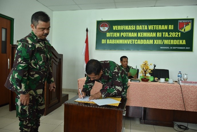 Acara yang dilaksanakan di Kodam XIII/Merdeka (Kota Manado), dilanjutkan dengan penandatanganan Berita Acara kegiatan Verifikasi Data Veteran Republik Indonesia TA. 2021.