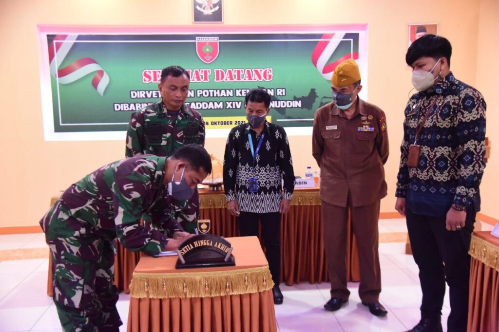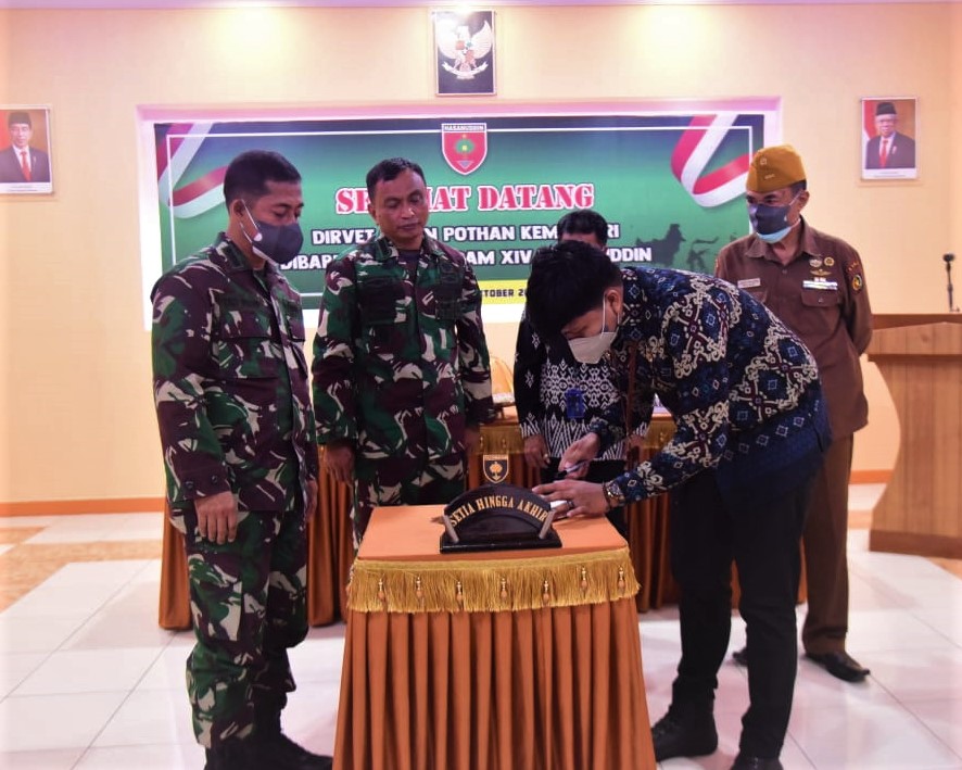 Selasa, 26 Oktober 2021Direktur Veteran Ditjen Pothan Kemhan, Brigadir Jenderal TNI Echsan Sutadji, S.Sos., M.M. Kamis (14/10), melaksanakan silaturahmi kepada Pangdam XIV/Hasanuddin (Kota Makassar), Mayor Jenderal TNI Mochamad Syafei Kasno, S.H. dalam rangka. melaksanakan audiensi kegiatan Verifikasi Data Veteran Republik Indonesia TA. 2021.