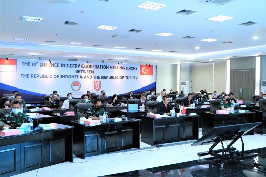 Selasa, 23 November 2021The 10th Defence Industry Cooperation Meeting (DICM) RI – Turki telah dilaksanakan di Aula Bela Negara, Ditjen Pothan Kemhan. DICM dipimpin oleh Dirtekindhan Ditjen Pothan Kemhan, Laksma TNI Sri Yanto, dan dihadiri oleh perwakilan Srena Angkatan, Slog Angkatan, Dirkersinhan Ditjen Strahan Kemhan, Puslitbang Alpalhan Balitbang Kemhan, Dit Tekindhan Ditjen Pothan Kemhan, Pusalpalhan Baranahan Kemhan, Direktur Hukum dan Perjanjian Politik dan Keamanan Ditjen HPI Kemenlu serta perwakilan Industri Pertahanan yaitu PTDI, PT.Pindad, PT.Len, PT.Pal, PT. Dahana, PT. Jala Berikat, PT. Tesco, PT. Garda Persada, PT. NTP, PT. MMF, PT. Bhimasena dan PT. Napindo, sedangkan dari Turki dipimpin oleh Dr. Murat Ceran, Head of International Cooperation Department, Presidency of The Republic of Turkey, Under Secretariat For Defence Industries, dan Industri Pertahanan Turki, diantaranya TAIS, Yonca Onuk, STM, Baykar, Havelsan, Aselsan, Milsoft, FNSS, Roketsan, BEST Group, dan SSB.