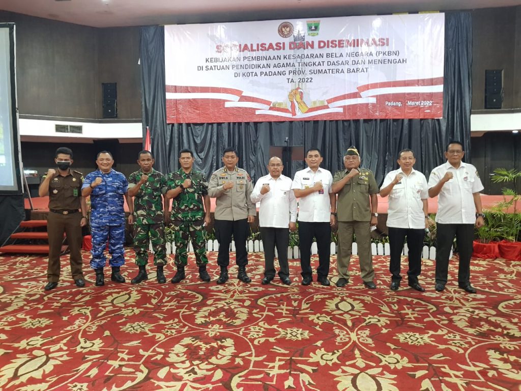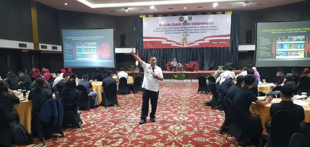 Rabu, 16 Maret 2022Padang, Rabu (16/03) Direktur Jenderal Potensi Pertahanan Kementerian Pertahanan Mayjen TNI Dadang Hendrayudha dalam sambutannya yang dibacakan Direktur Bela Negara Ditjen Pothan Kemhan Brigadir Jenderal TNI Dr. Jubei Levianto bahwa dengan kegiatan Sosialisasi dan Diseminasi kesadaran Bela negara Kementerian Pertahanan berharap dapat terbangun karakter warga negara di satuan pendidikan agama dan mampu berkontribusi dengan baik demi kemajuan bangsa dan negara Indonesia sesuai kapasitas dan kompetisinya masing-masing. Penyampain tersebut, pada saat pembekalan kegiatan Sosialisasi dan Diseminasi Pembinaan Kesadaran Bela Negara di satuan Pendidikan agama tingkat dasar dan menengah TA. 2022 di Kyriad Bumiminang Hotel Kota Padang. Pembukaan kegiatan Sosialisasi dan Diseminasi Pembinaan Kesadaran Bela Negara dibuka secara simbolis oleh Direktur Bela Negara dan dikuti peserta dari Guru Ibtidaiyah, Tsanawiyah, Aliyah dan Pelajar dari Madrasah Aliyah. serta staf Madrasah. Sosialisasi dan Diseminasi juga diikuti dari peserta sekolah Kristen , Hindhu dan Budha, baik dari Guru, Staf dan pelajar SMA Kota Padang. Hadir dalam acara pembukaan Sosialisasi dan Diseminasi Pembinaan Kesadaran Bela Negara tersebut dihadiri pejabat Forkopimda Provinsi Sumatera Barat.