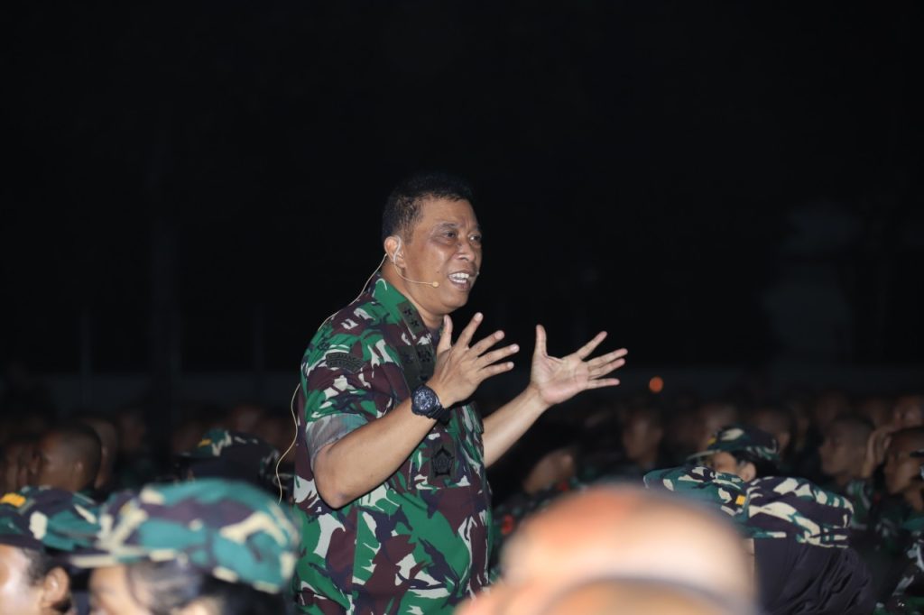 Bandung- Dirjen Pothan Kemhan Mayjen TNI Dadang Hendrayudha dalam kesempatannya memberikan ceramah wawasan kebangsaan setelah memimpin upacara pembukaan pelatihan dasar militer komponen cadangan (Latsarmil Komcad) pertahanan TA. 2022 di Mako Kopasgat Bandung (Senin, 30/5/2022)