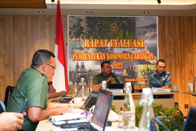 Bali (21/09), Direktorat Jenderal Potensi Pertahanan Kementerian Pertahanan Republik Indonesia melalui Direktorat Sumdahan menyelenggarakan Rapat Evaluasi Pembentukan Komponen Cadangan (Komcad) TA. 2022 di Ruang Rapat Hotel Tribe Bali Kuta Beach, Bali.