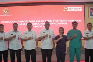 Kamis, 10 November 2022Kamis (10/11), Dalam rangka memperingati Hari Pahlawan Tahun 2022, Ditjen Pothan Kemhan bekerjasama dengan Rumah Sakit Kanker Dharmais melaksanakan kegiatan Donor Darah. Kegiatan ini dipimpin oleh Dirjen Pothan Mayjen TNI Dadang Hendrayudha dan dihadiri Sesditjen Pothan Laksma TNI Sri Yanto, S.T., Para Direktur, Personel Ditjen Pothan Kemhan serta dari Tim Tenaga Kesehatan RS. Dharmais yang dipimpin oleh dr. Asmi Rita. Donor darah berlangsung di Aula Bela Negara Gedung R. Suprapto lantai 8.