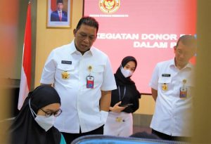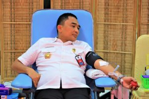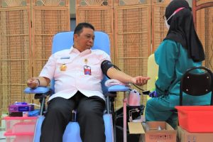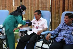Kegiatan donor darah ditutup dengan pemberian cinderamata (Red Bagdatin)