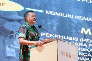 Acara selanjutnya penyampaian materi oleh Dirjen Pothan Kemhan Mayjen TNI Dadang Hendrayudha yang memberikan penekanan kepada para peserta bahwa: