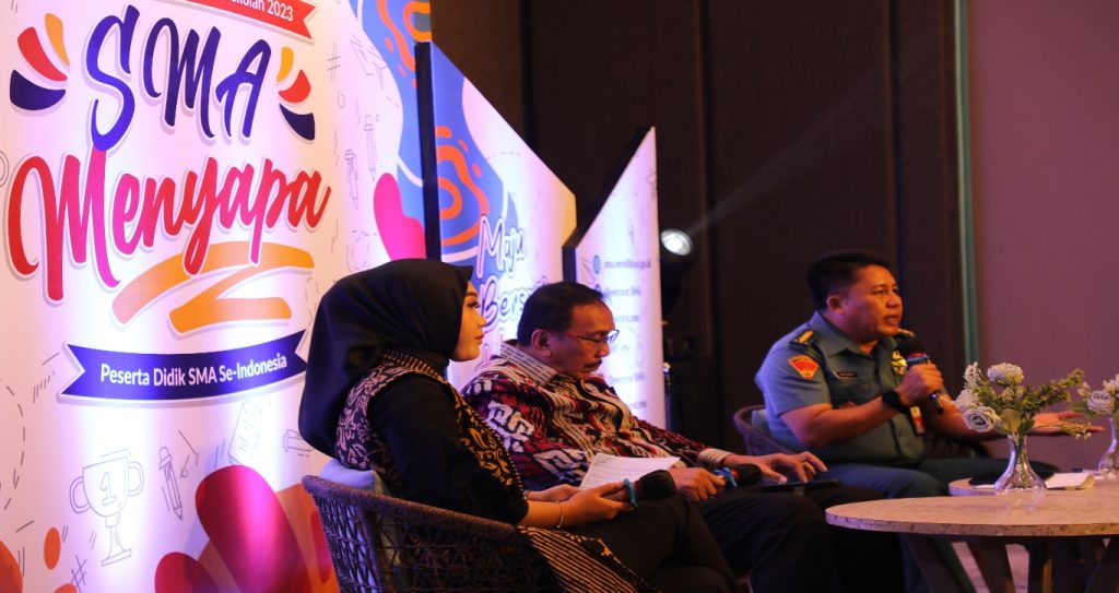 Selasa, 18 Juli 2023Kementerian Pertahanan RI saat ini terus melakukan upaya-upaya penanaman nilai-nilai Bela Negara kepada generasi muda. Sejalan dengan upaya tersebut pada hari Selasa, 18 Juli 2023, bertempat di Mercure BSD City Tangerang Banten, Direktur Bela Negara Ditjen Pothan Kemhan yang diwakili oleh Kasubdit Lingkungan Pendidikan Kolonel Mar Rachmat Djunaidy hadir sebagai narasumber kegiatan SMA Menyapa dengan Tema “ Pelajar SMA Berkarakter Pancasila”. Kegiatan ini merupakan salah satu upaya pembinaan nila-nilai Bela Negara dilingkungan Pendidikan. Mendikbudristek Nadiem Makarim, BA., MBA. yang hadir secara daring dalam pesannya kepada seluruh siswa baru kelas X di seluruh Indonesia menyampaikan bahwa peserta didik baru dapat memulai perjalanan mereka di sekolah lebih percaya diri, memiliki pemahaman tentang lingkungan sekolah yang aman, nyaman dan sehat, dapat menerapkan profil pelajar Pancasila dilingkungan sekolah, mampu menghadapi tantangan belajar guna keberlanjutan pendidikan dimasa yang akan datang. Terkait kegiatan tersebut, menindaklanjuti Kesepakatan Bersama antara Kementerian Pertahanan dengan Kementerian Pendidikan dan Kebudayaan Nomor: II/V/NK/2021 tanggal 7 Mei 2021 tentang Pembinaan Kesadaran Bela Negara, Ditjen Pothan Kemhan mendukung kegiatan yang dilaksanakan oleh Kemendikbudristek RI terkait dalam kegiatan pelaksanaan Pembinaan Kesadaran Bela Negara. Kegiatan SMA menyapa berlangsung secara aman dan lancar.