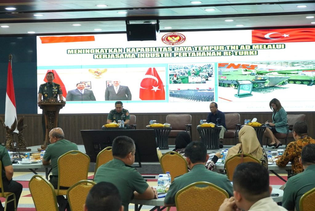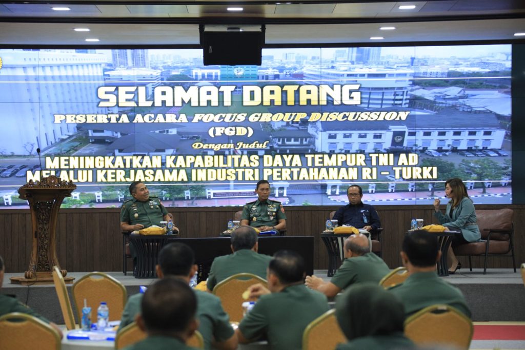 Bertempat di Aula A.H. Nasution Lt. 2 Markas Besar Angkatan Darat, Dirjen Pothan Kemhan RI Mayjen TNI Mohammad Fadjar, MPICT., didampingi Kolonel Arh Imanuel Pasaribu, S.IP, M.Si. hadir sebagai Narasumber pada acara Focus Group Discussion (FGD) yang dipimpin oleh Koorsahli Kasad Letjen TNI I Nyoman Cantiasa,S.E., M.Tr (Han) dengan mengangkat tema MENINGKATKAN KAPABILITAS DAYA TEMPUR TNI-AD MELALUI KERJA SAMA INDUSTRI PERTAHANAN RI-TURKI”. Turut hadir Narasumber lainnya Waasrena Kasad Brigjen TNI Rusli, S.H., S.I.P., M.M. dan Wakil Direktur Utama PT. Pindad (Persero) Bapak Dr. Syaifuddin, ST. M.M.