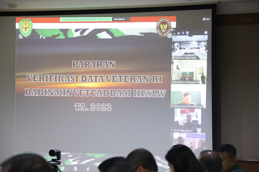 Kegiatan Verifikasi Data Veteran Republik Indonesia secara daring/zoom meeting di wilayah Kodam III/Siliwangi pada hari ini, diperoleh rekapitulasi data Veteran Republik Indonesia sebanyak 37.309 orang dengan rincian: Veteran PKRI 32.806 orang; Veteran Trikora 473 orang; Veteran Dwikora 405 orang; Veteran Seroja 2.200 orang dan Veteran Perdamaian RI sejumlah 1.425 orang.