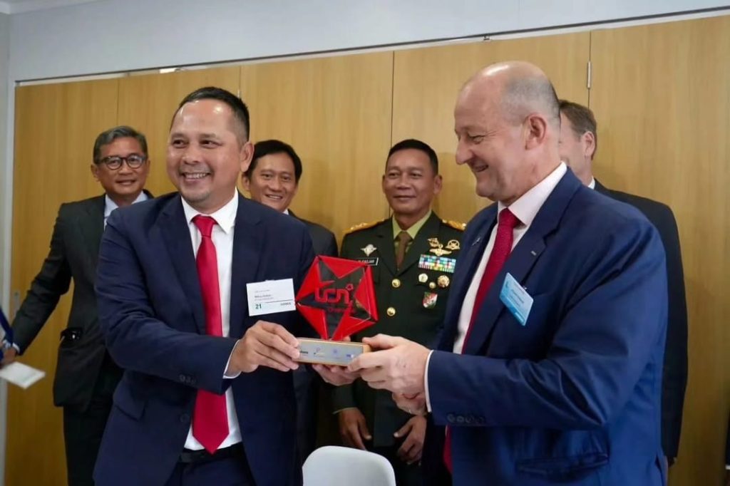 Di sela-sela pelaksanaan Singapore Air Show 2024 yang berlangsung di Changi Exhibition Center, Dirjen Pothan Kemhan Mayjen TNI Mohammad Fadjar bersama Dirut PT Len Industri (Persero) Bobby Rasyidin, menyaksikan penandatanganan kerja sama antara PT Len Industri dengan Airbus Helicopters, Rabu (21/2).
