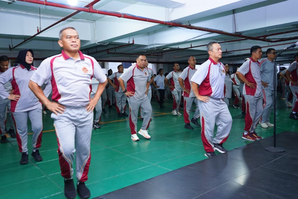 Kegiatan diawali dengan olah raga bersama yang dikuti dengan semangat dan gembira oleh seluruh pegawai Ditjen Pothan. (Red Bagdatin)
