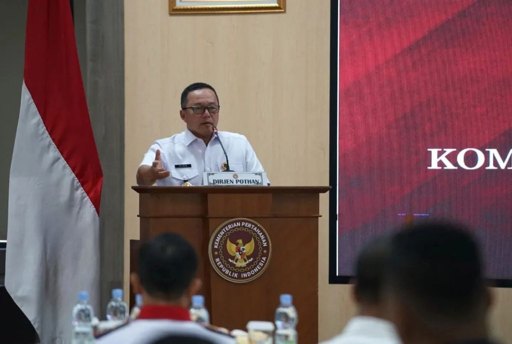 Rabu, 21 Agustus 2024Bertempat di Aula Bela Negara Lt. 8 Gedung Suprapto, Ditjen Pothan Kemhan, Dirjen Pothan Kemhan – Mayjen TNI Piek Budyakto membuka kegiatan Sosialisasi Penataan dan Pembinaan Sarana dan Prasarana Nasional Komponen Pendukung Pertahanan Negara TA. 2024 didampingi Direktur Sumber Daya Pertahanan Ditjen Pothan Brigjen TNI Ferry Trisnaputra, S.E., M.A., M.S.P. turut hadir Jajaran Direktur dilingkungan Ditjen Pothan Kemhan. Undangan acara sosialisasi terdiri atas pejabat Internal Kemhan dan K/L terkait antara lain dari Kemdagri, Bappenas, Kemen ESDM dan Kemhub serta beberapa Perusahaan yang terkait dengan Sarana dan Prasarana Nasional.