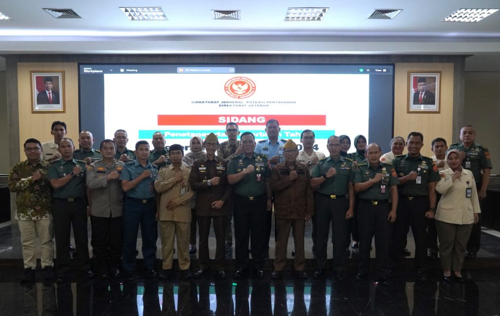 Selasa, 3 September 2024Bertempat di Aula Bela Negara Gedung R. Soeprapto Lt. 8, Direktur Veteran Ditjen Pothan Kemhan – Brigjen TNI Imanuel Pasaribu, S.IP, M.Si., memimpin sidang penetapan dan penerbitan Tanda Kehormatan Veteran RI Triwulan III Tahun 2024 secara hybrid, tatap muka dan daring dihadiri oleh para Kasubdit Ditvet Ditjen Pothan, para Kababinminvetcad, Perwakilan DPP LVRI, DPD LVRI, Diswatpersal, Diswatpersau, Rowatpers SSDM Polri, Ditbinpers PMPP TNI, PT. Taspen (Persero) Pusat dan Ditjen Dukcapil Kemendagri.